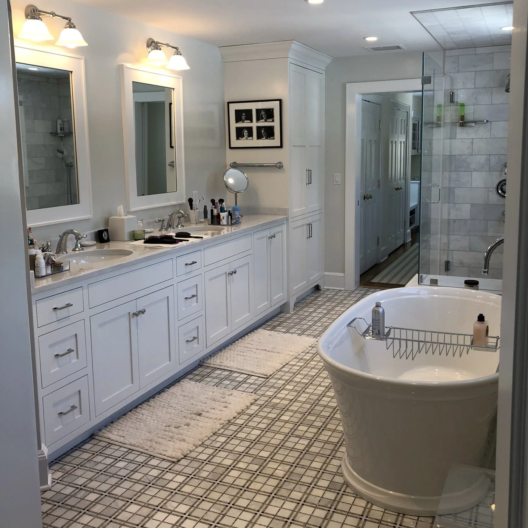 Bedford Home Design has designed and installed bathrooms of all types: powder rooms, half-baths, vanities, and grand masters. With all trades in-house, you can customize cabinetry, tiles, wallpaper, flooring, and plumbing. This streamlined construction process allows you to get the exact bathroom you want under the budget you need.